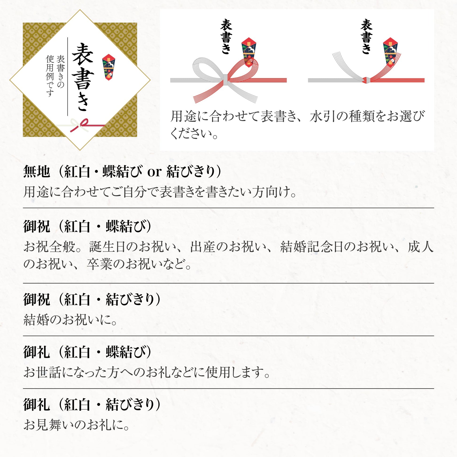 ご家庭用だけでなく、大切な方への贈答品としてもお選びいただいております。ギフト用の熨斗(のし)、お土産用の手提げ袋などを無料で対応いたします。また、水引や熨斗の表書きについても各商品ページの画像にて解説しておりますので、ご参考にしていただければ幸いです。お祝いや感謝の気持ちを届けるお手伝いをいたします。